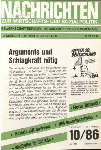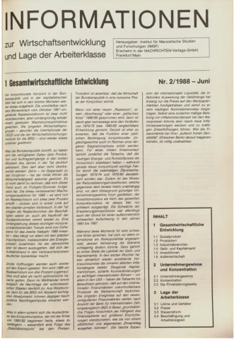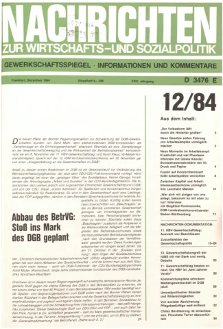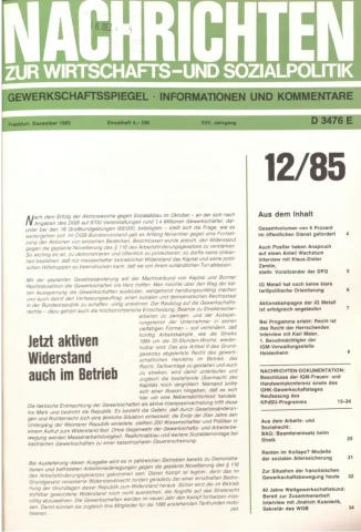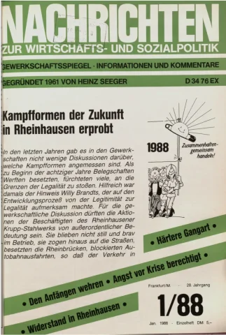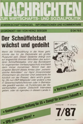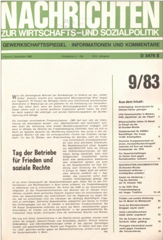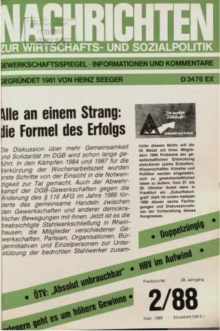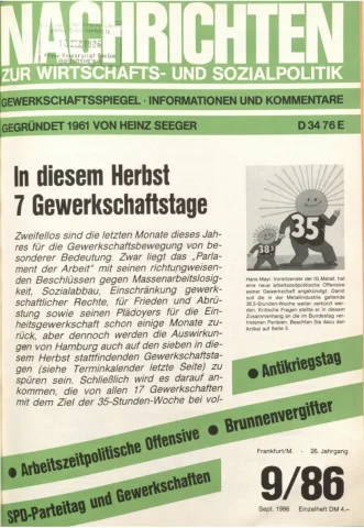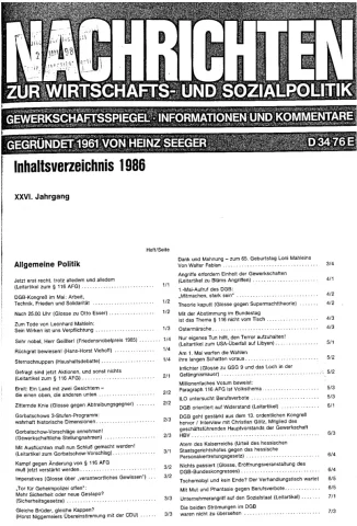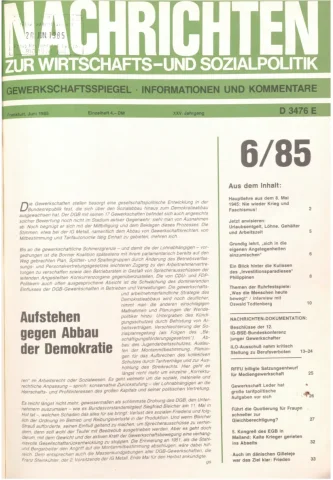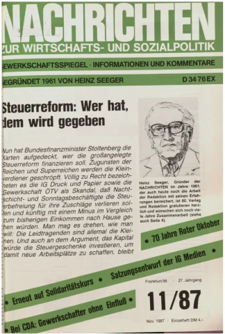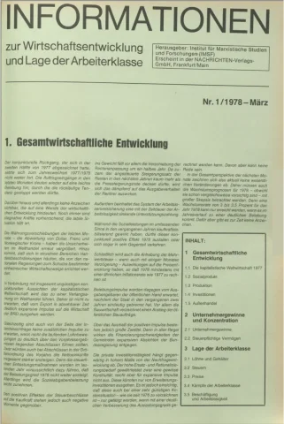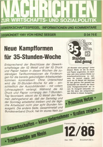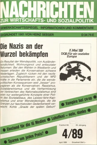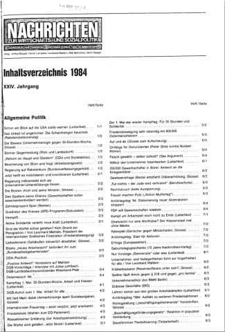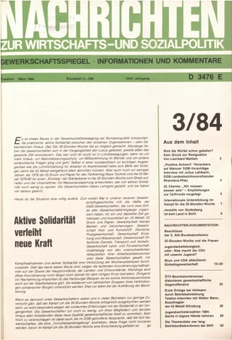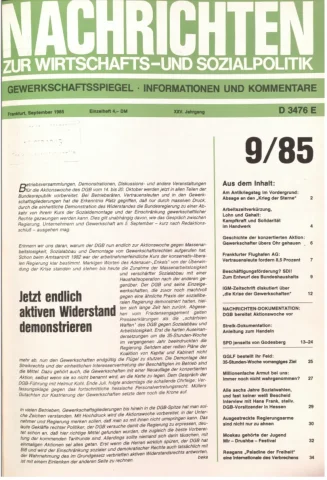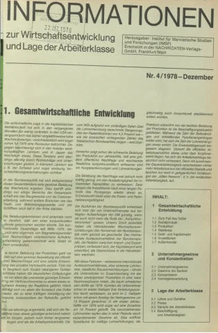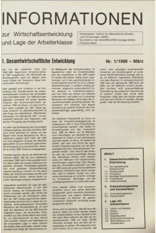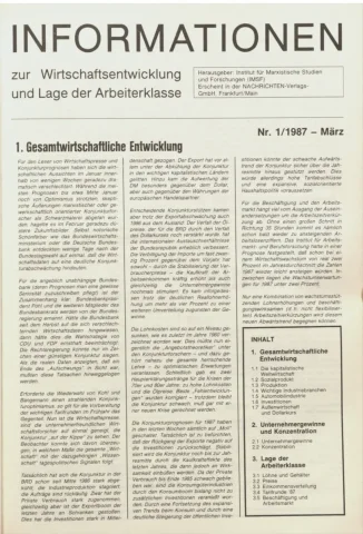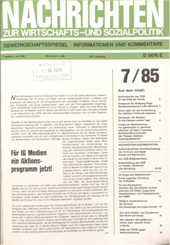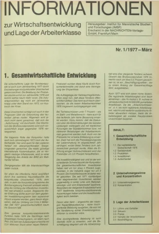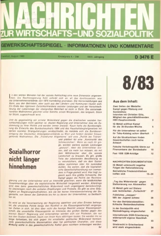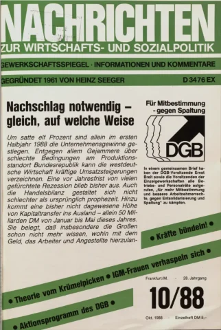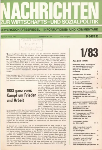 Die Zeitschrift erschien zunächst von 1961 bis 1970 unter dem Titel Nachrichten, Informationen und Kommentare zur Wirtschafts- und Sozialpolitik in Friedrichshafen am Bodensee. Herausgeber war Heinz Seeger, sein redaktioneller Mitarbeiter war Gerd Siebert. Ab Heft 7/1969 kamen Josef Ledwohn aus Essen und Heinz Lukrawka aus Dinslaken in den Herausgeberkreis. Die Zeitschrift erschien nun in der »Nachrichten-Verlags-GmbH« in Frankfurt am Main. Mit Heft 1/1974 änderte sich der Titel in: Nachrichten zur Wirtschafts- und Sozialpolitik: Gewerkschaftsspiegel; Informationen und Kommentare. Ab 1970 lagen der Zeitschrift vierteljährlich die Informationen zur Wirtschaftsentwicklung und Lage der Arbeiterklasse bei, die vom Institut für Marxistische Studien und Forschungen in Frankfurt a.M. herausgegeben wurden und seit 1982 auch die Nachrichten-Dokumentation: Reden, Beschlüsse, Meinungen. 1989 wurde das Erscheinen eingestellt. Die letzte Ausgabe war das Heft 12/1989.