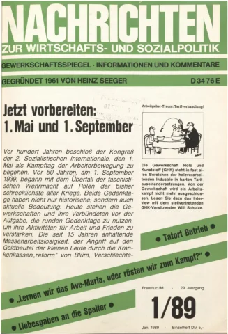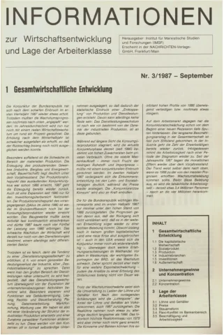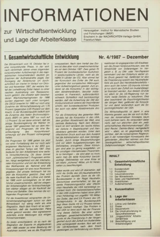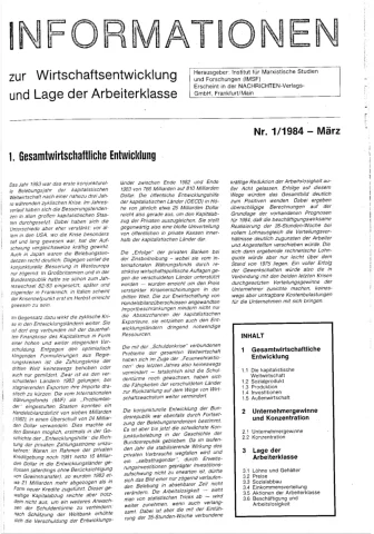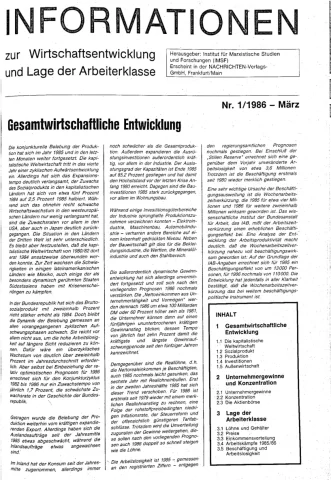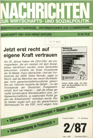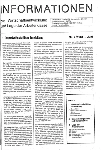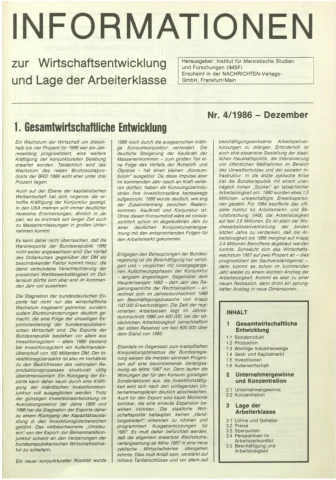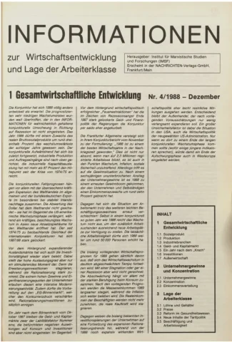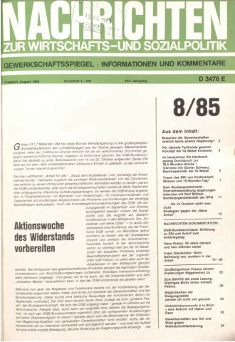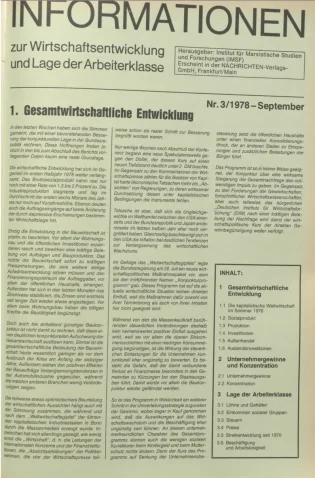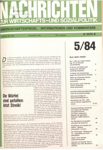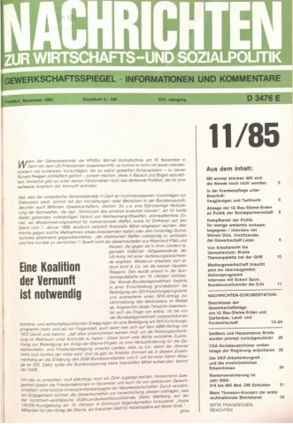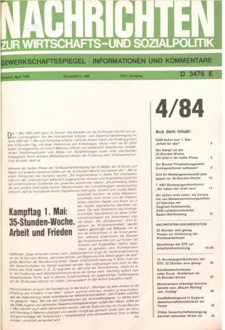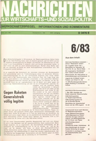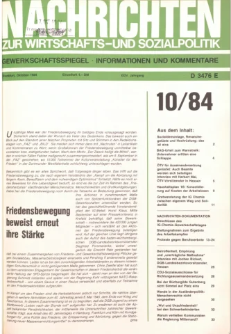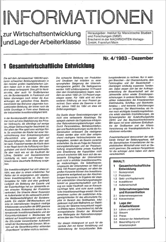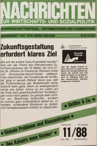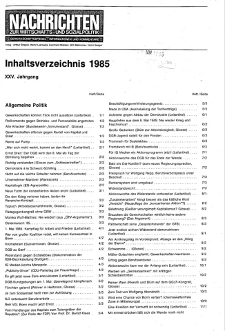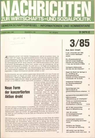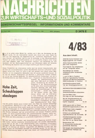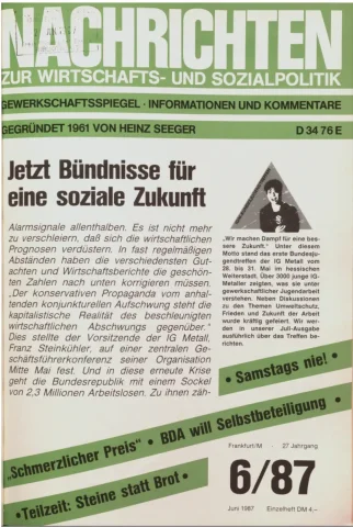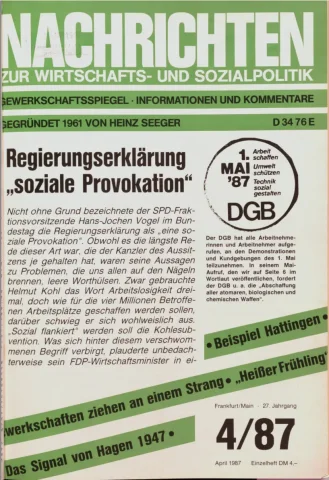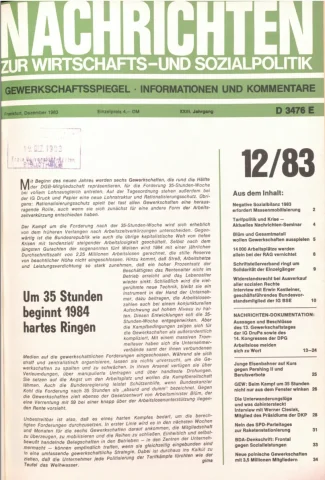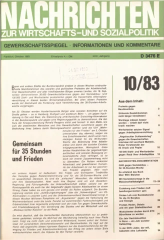Die Zeitschrift erschien zunächst von 1961 bis 1970 unter dem Titel Nachrichten, Informationen und Kommentare zur Wirtschafts- und Sozialpolitik in Friedrichshafen am Bodensee. Herausgeber war Heinz Seeger, sein redaktioneller Mitarbeiter war Gerd Siebert. Ab Heft 7/1969 kamen Josef Ledwohn aus Essen und Heinz Lukrawka aus Dinslaken in den Herausgeberkreis. Die Zeitschrift erschien nun in der »Nachrichten-Verlags-GmbH« in Frankfurt am Main. Mit Heft 1/1974 änderte sich der Titel in: Nachrichten zur Wirtschafts- und Sozialpolitik: Gewerkschaftsspiegel; Informationen und Kommentare. Ab 1970 lagen der Zeitschrift vierteljährlich die Informationen zur Wirtschaftsentwicklung und Lage der Arbeiterklasse bei, die vom Institut für Marxistische Studien und Forschungen in Frankfurt a.M. herausgegeben wurden und seit 1982 auch die Nachrichten-Dokumentation: Reden, Beschlüsse, Meinungen. 1989 wurde das Erscheinen eingestellt. Die letzte Ausgabe war das Heft 12/1989.