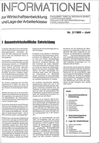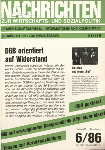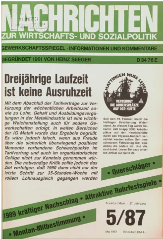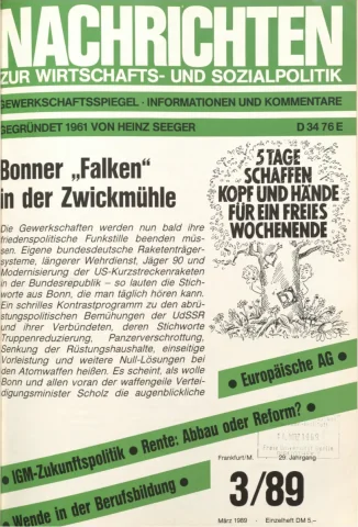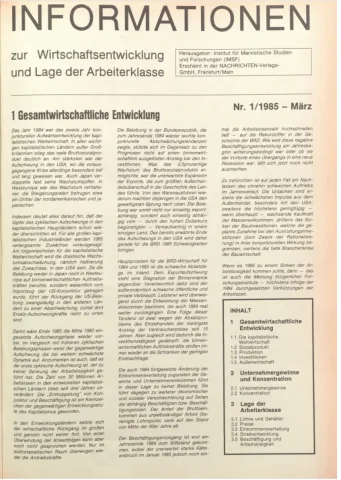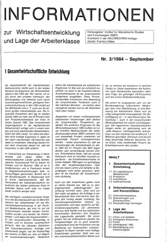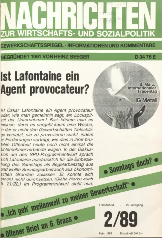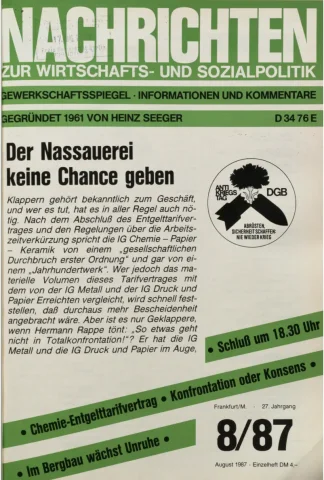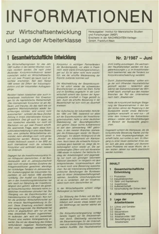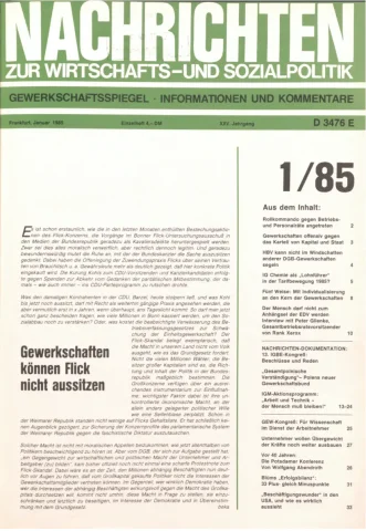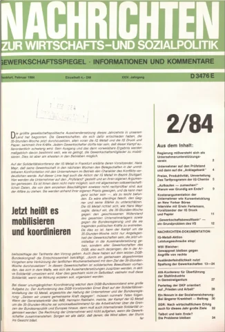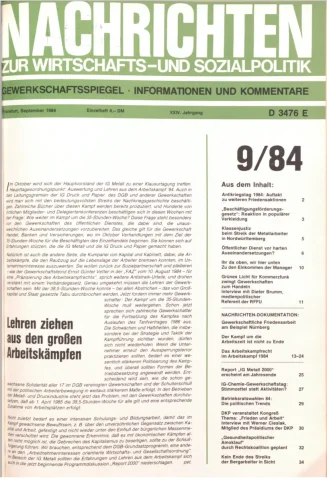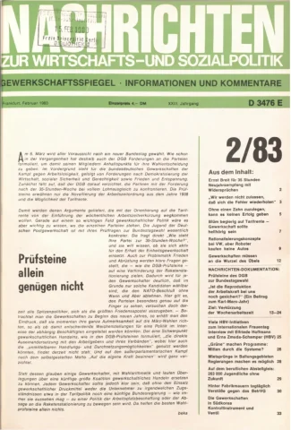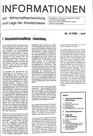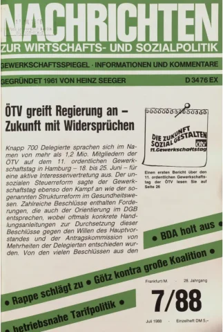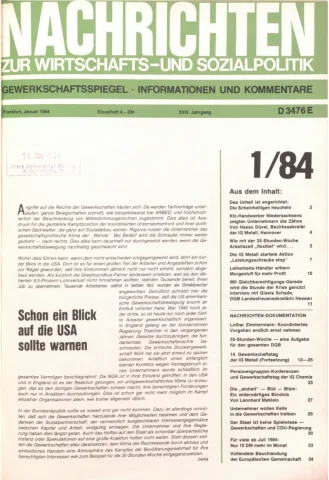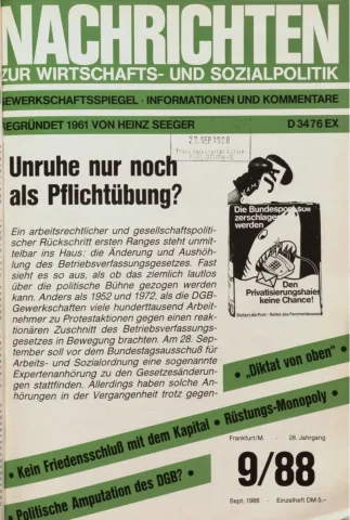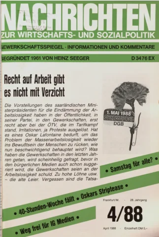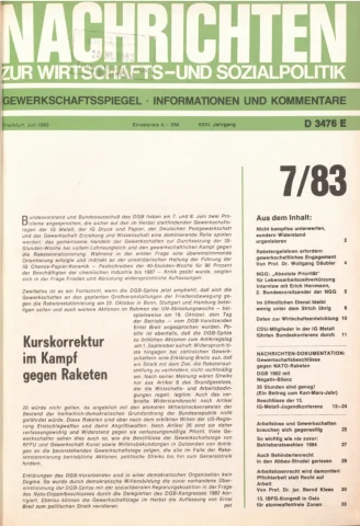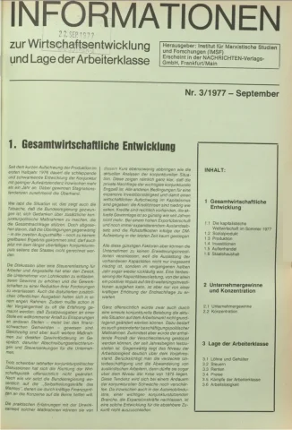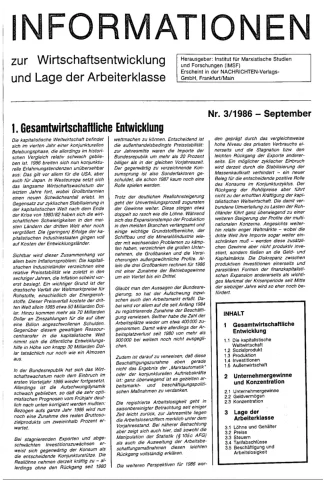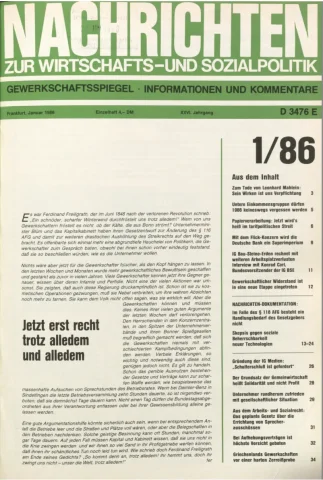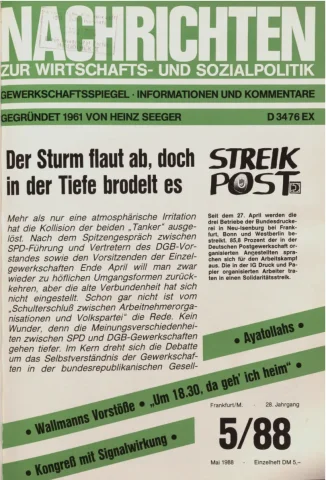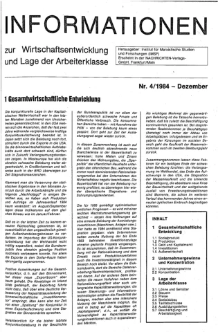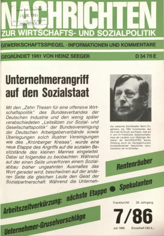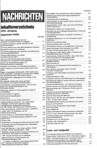 Die Zeitschrift erschien zunächst von 1961 bis 1970 unter dem Titel Nachrichten, Informationen und Kommentare zur Wirtschafts- und Sozialpolitik in Friedrichshafen am Bodensee. Herausgeber war Heinz Seeger, sein redaktioneller Mitarbeiter war Gerd Siebert. Ab Heft 7/1969 kamen Josef Ledwohn aus Essen und Heinz Lukrawka aus Dinslaken in den Herausgeberkreis. Die Zeitschrift erschien nun in der »Nachrichten-Verlags-GmbH« in Frankfurt am Main. Mit Heft 1/1974 änderte sich der Titel in: Nachrichten zur Wirtschafts- und Sozialpolitik: Gewerkschaftsspiegel; Informationen und Kommentare. Ab 1970 lagen der Zeitschrift vierteljährlich die Informationen zur Wirtschaftsentwicklung und Lage der Arbeiterklasse bei, die vom Institut für Marxistische Studien und Forschungen in Frankfurt a.M. herausgegeben wurden und seit 1982 auch die Nachrichten-Dokumentation: Reden, Beschlüsse, Meinungen. 1989 wurde das Erscheinen eingestellt. Die letzte Ausgabe war das Heft 12/1989.